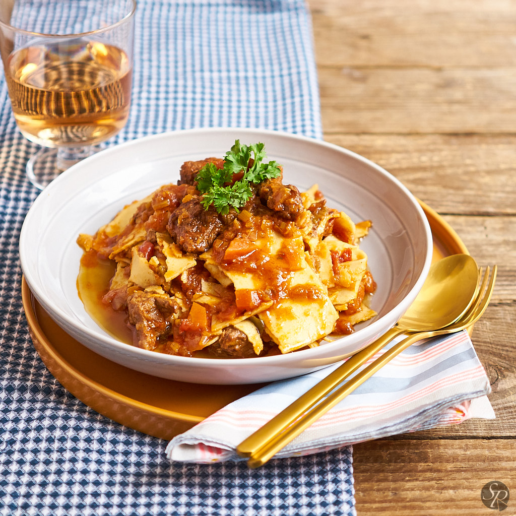 Počasi kuhan goveji ragu, ki me je odrešil vse zelenjave, ki se mi je valjala po hladilniku. Za osnovo raguja, predlagam uporabo soffritta (čebula, zelena in korenček), kot to počnejo Italijani, ki so specialisti za pripravo okusnih ragujev. Za piko na i sem mojemu raguju dodala por, in to veliko pora. 😌 Postregla sem ga s testeninami, katerim se v teh dnevih nikakor ne morem upreti. 😍 Končno so prišli na svoj račun listi lazanje, katere sem natrgala in stresla v vrelo vodo za par minut (pazite, saj se zelo hitro skuhajo). Sestavine za ragu: 800-1000g govejega mesa (bočnik, pleče)…