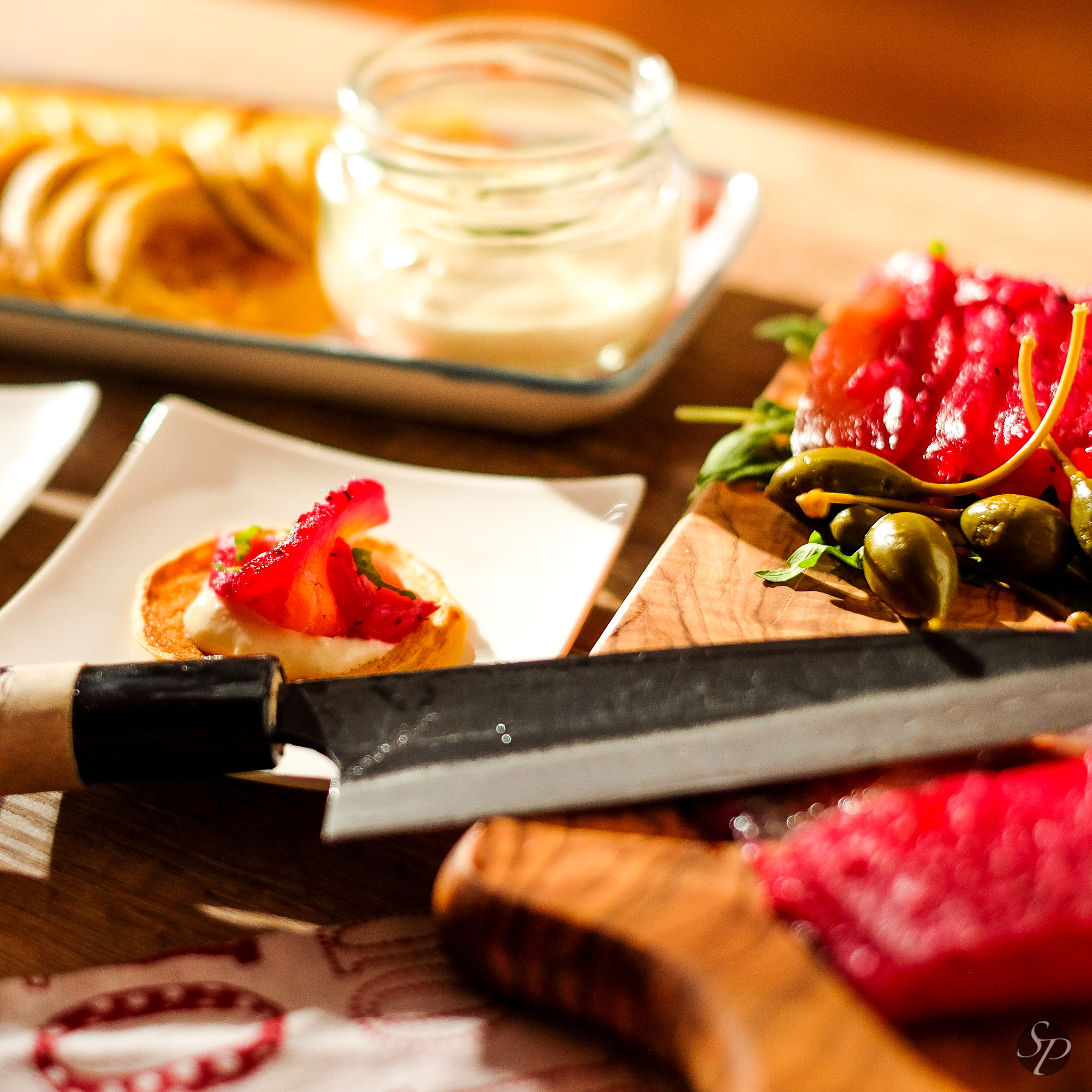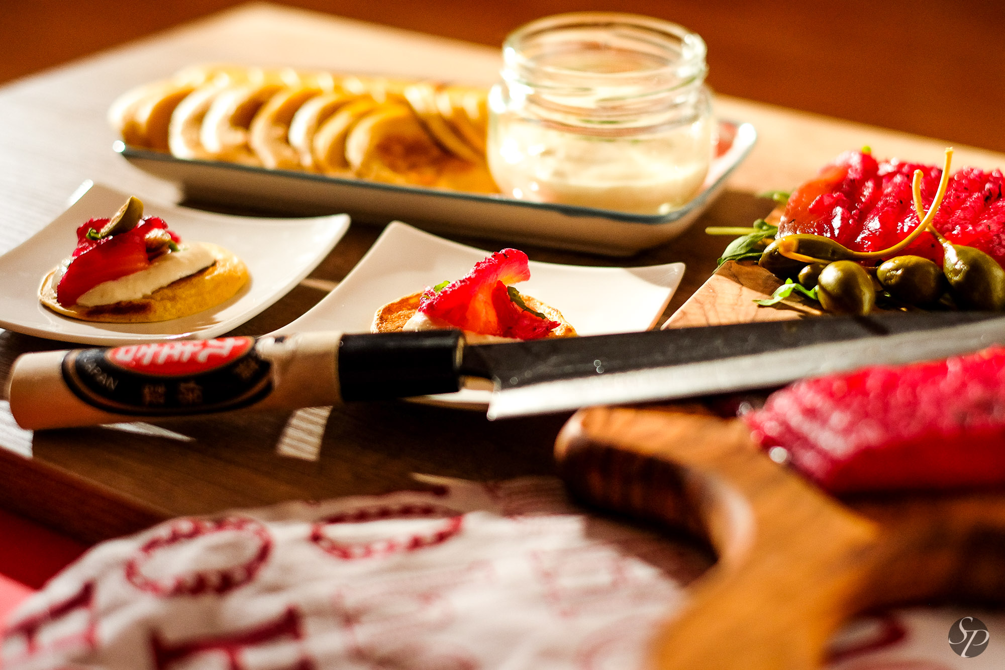 Losos pred rezanjem še malce obrišemo s papirnamiti brisačkami. Režemo ga zelo na tanke rezine, bo potreben kar dober in oster nož. 🙂