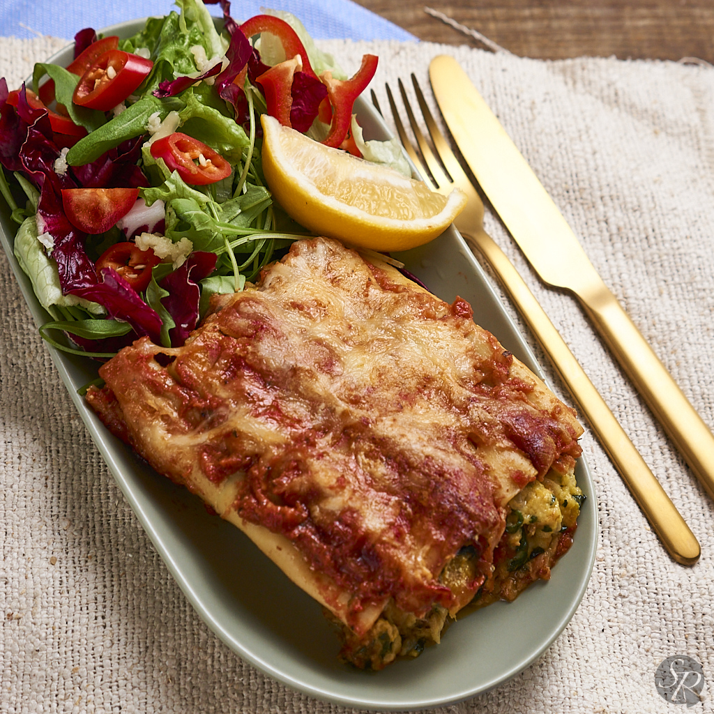 Po novem letu sem pri inventuri shrambe ugotovila, da se v njej skriva paket kanelonov. Ker sem prisegla, da bom januarja na blogu delila z vami brezmesne jedi, sem razmišljala kaj bi v nadev dodala zraven špinače in se spomnila na masleno bučo (na balkonu sem imela shranjeno edino ki je lani zrasla v Halozah). Bučo sem pred tem spekla v pečici, da je bila mehka in karamelizirana. V nadevu se skriva še maskarpone sir in parmezan ter začimbe.