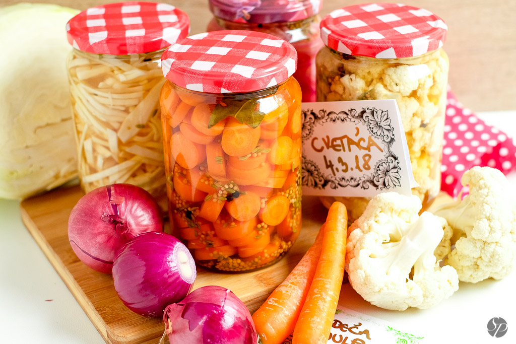 In kaj lahko na hitro okisamo? Načeloma vso zelenjavo, jaz sem tokrat okisala cvetačo, zelje, korenček in čebulo.
