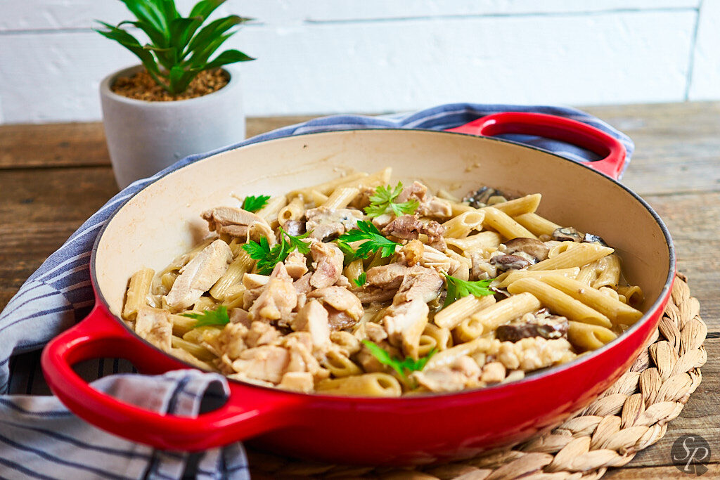 Testenine alfredo s piščancem in gobami