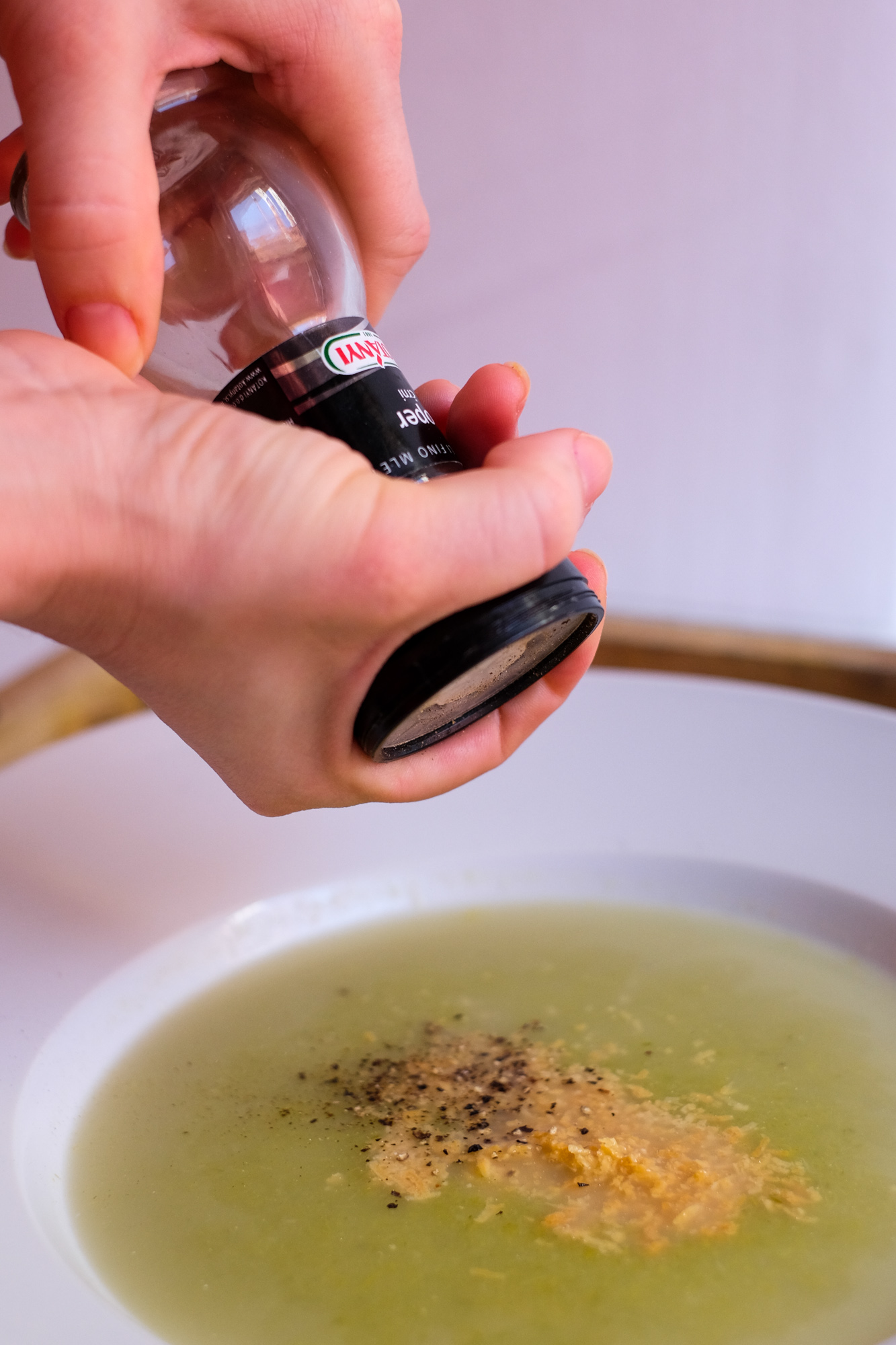 Juho odstavimo ter s paličnim mešalnikom/blenderjem zmiksamo. V kolikor želite ekstra gladko juho jo spustite skozi cedilo.