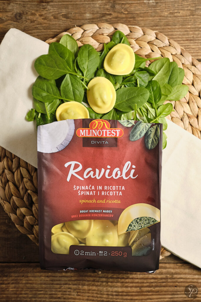 - 1 paket Mlinotestovih Divita raviolov s špinačo in rikoto