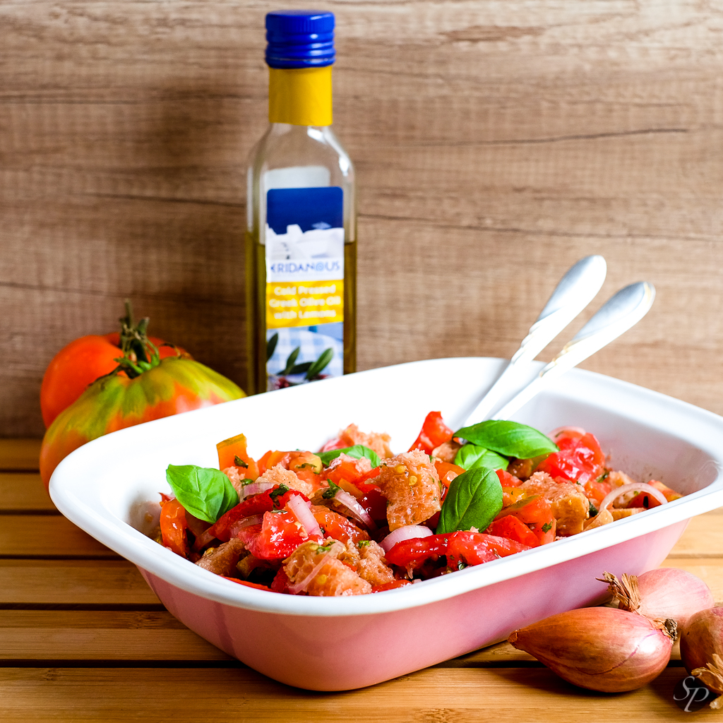 Panzanella je odličen način za uporabo starega kruha, ki se vam valja po predalih. In v teh poletnih dnevih, ko so paradižniki najbolj sočni, je priprava solate pravo veselje.